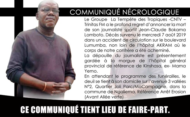 Jean-Claude Lomboto n’est plus. Le journaliste sportif et président de la commission de la presse de la Ligue Nationale de Football (LINAFOOT) est mort tragiquement, suite à un accident de la circulation, dans la nuit ...