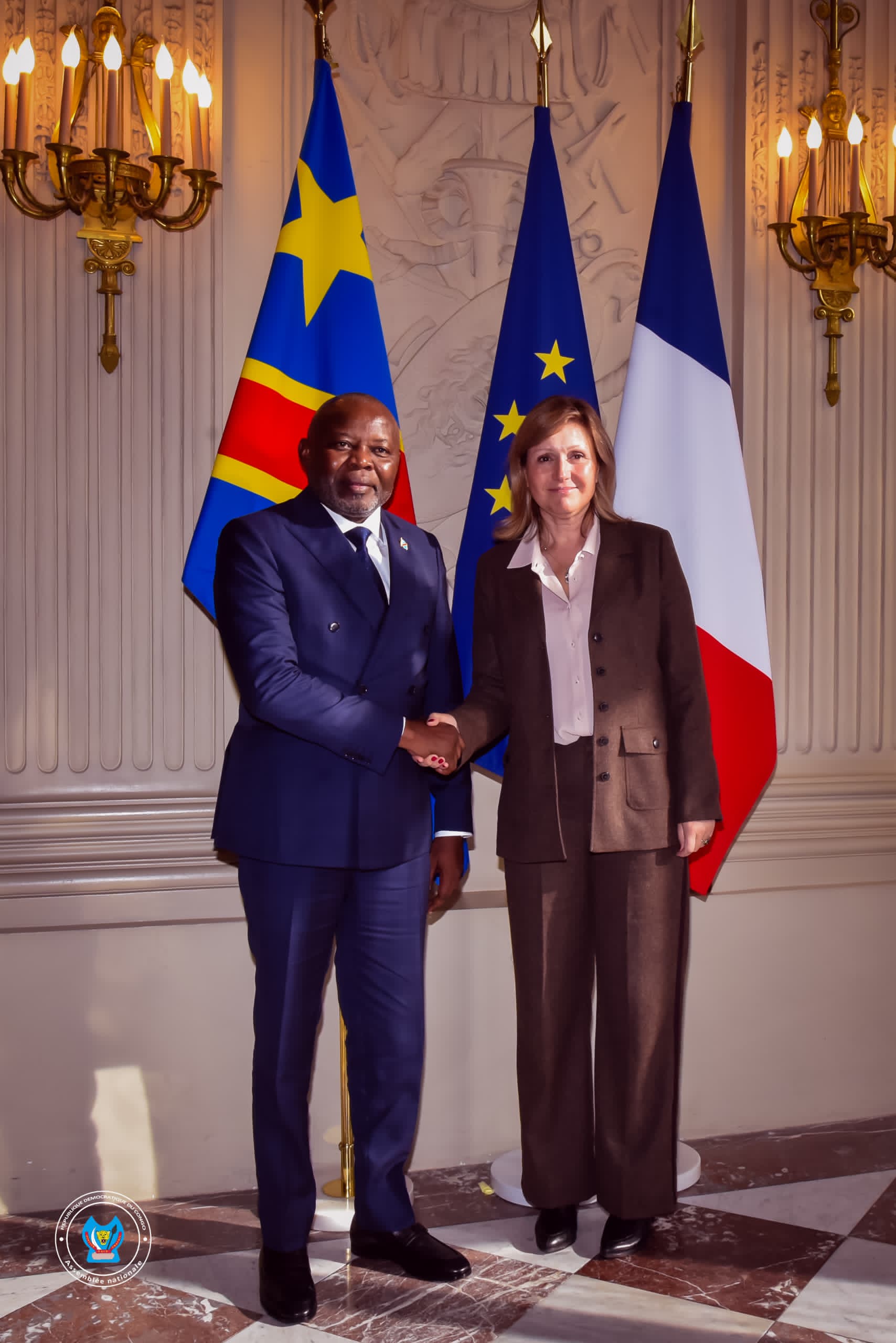 Le Président de l’Assemblée Nationale, le Professeur Vital Kamerhe, séjourne à Paris la Capitale Française pour une visite de travail, avec une importante délégation des Députés Nationaux, dont le Rapporteur Jacques Djoli, le Speaker de la Chambre basse du Parlement, a échangé avec son Homologue Français Yaël Braun-Pivet sur plusieurs questions liées notamment à la réhabilitation des relations parlementaires et à la Constitution des groupes d’amitié et de travail entre les deux Assemblées nationales; à la vision stratégique commune, au partenariat rénové dans le domaine économique entre les deux Nations ainsi qu’à la nécessité d’une intervention humanitaire française au profit de la population meurtrie des Provinces du Nord-Kivu et de l’Ituri.